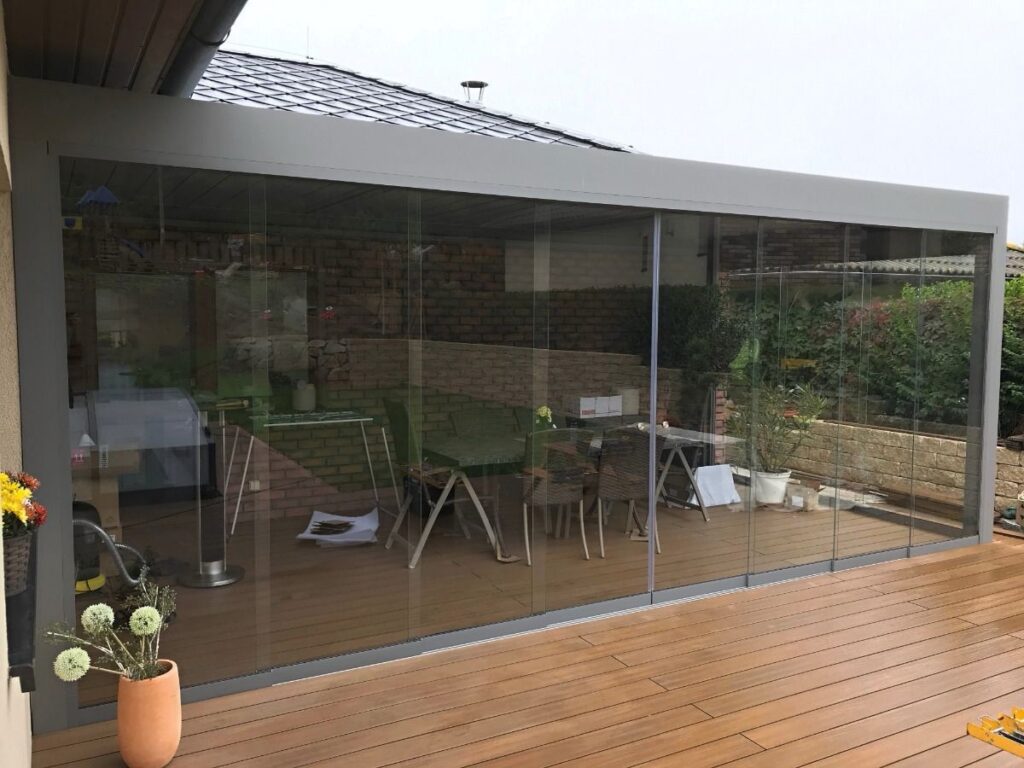 → Télikert funkció és üvegfal: A pergola tető lamellái igény szerint szigeteléssel is kérhetők, hogy télen is komfortos életteret biztosítsanak. Ezen felül üvegfal is kérhető, amely védelmet nyújt a szél és eső ellen, miközben megőrzi a kilátást és plusz életteret biztosít.